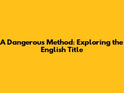 A Dangerous Method: Exploring The English Title