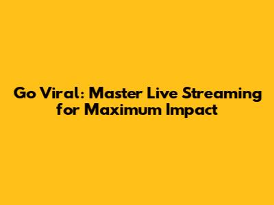 Go Viral: Master Live Streaming For Maximum Impact