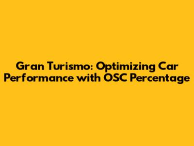 Gran Turismo: Optimizing Car Performance With OSC Percentage