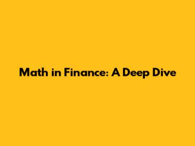 Math In Finance: A Deep Dive